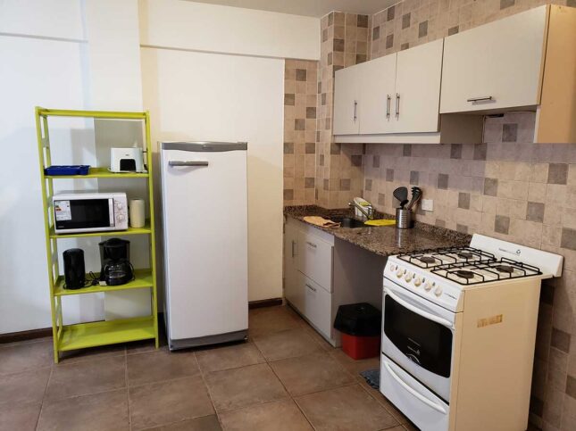 - Cocina a gas con 4 hornallas y horno, Microondas, Vajilla completa, pava eléctrica, tostadora, cafetera y Heladera