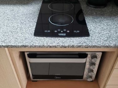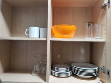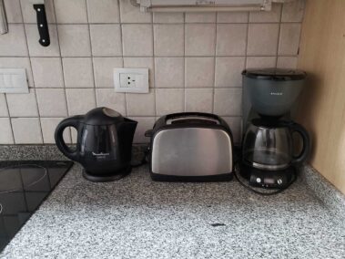 • Cocina eléctrica totalmente equipada, vajilla completa, cafetera y heladera.