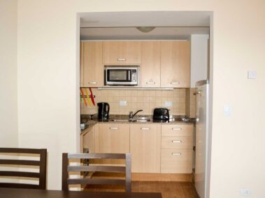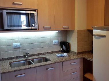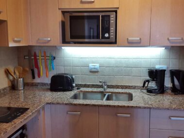 • Cocina eléctrica totalmente equipada con anafes y Horno , vajilla completa, cafetera, tostadora, pava eléctrica y heladera.
