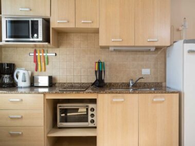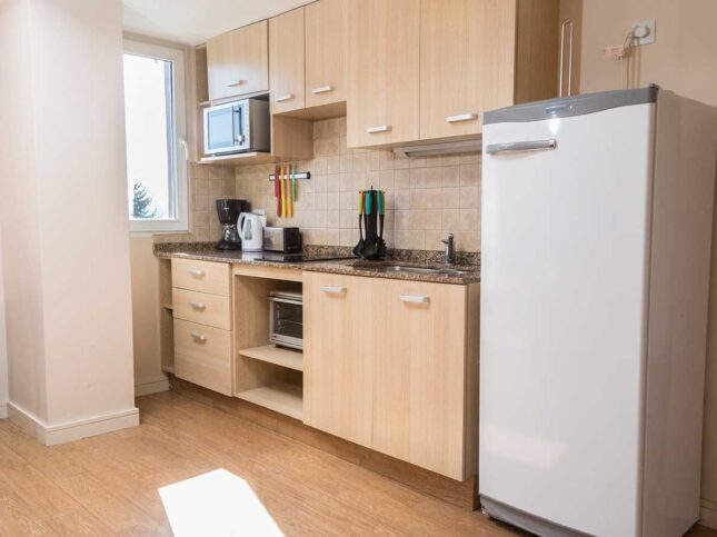 - Cocina eléctrica totalmente equipada con anafes y horno, vajilla completa, cafetera, tostadora, pava eléctrica y heladera.